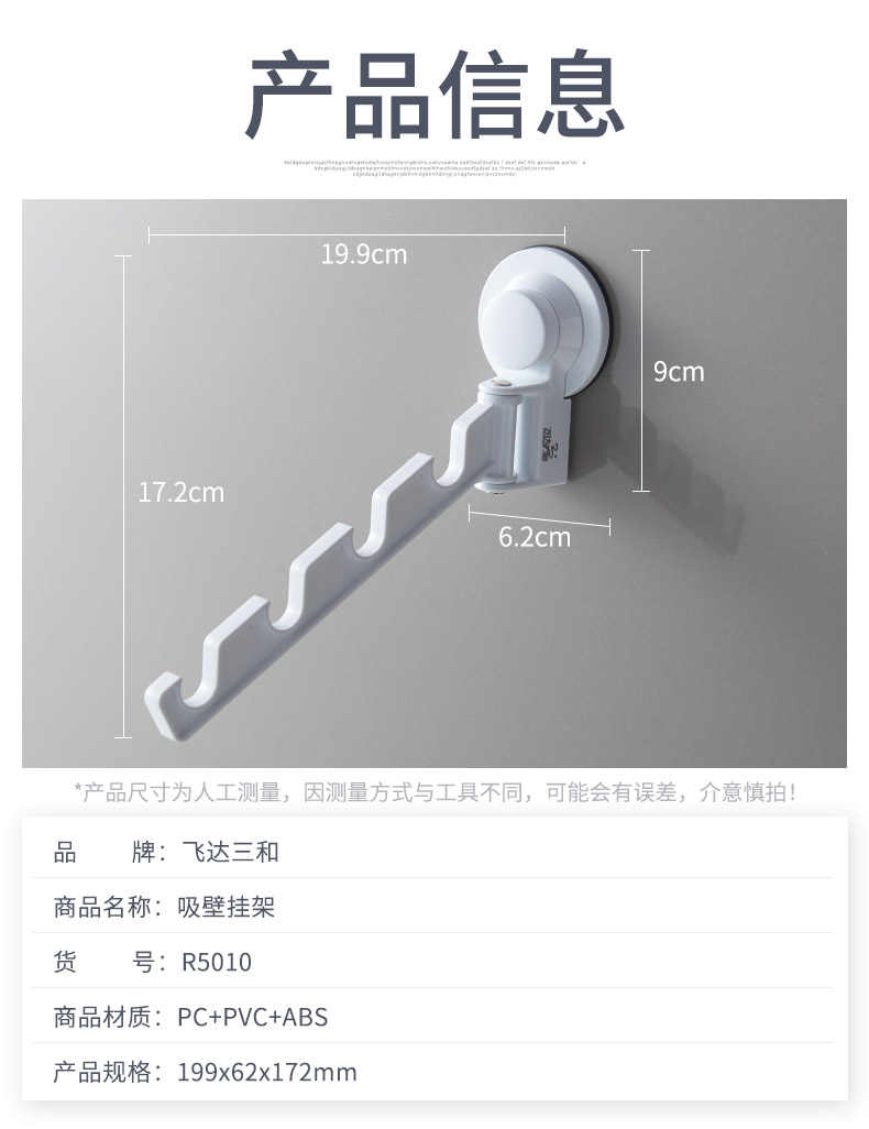 品牌名称:乐玩(中国)三和 生产地区:中国·浙江·台州 乐玩(中国)货号:R5010 装箱数:48 乐玩(中国)尺寸:19.9*6.2*17.2cm 外箱尺寸:49*34.5*41cm 条形码:6931643817462 乐玩(中国)三和R5010 强力吸壁挂架