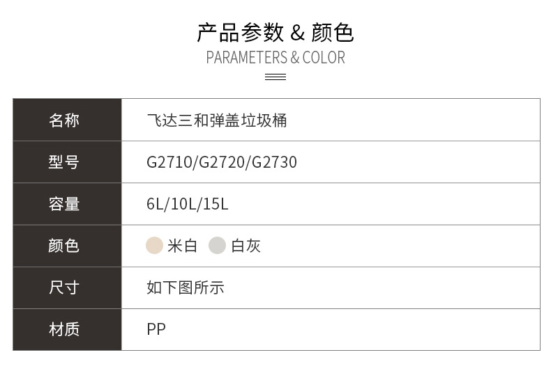 乐玩(中国)三和G2710时尚垃圾桶(6L)/G2720时尚垃圾桶(10L)/G2730时尚垃圾桶(15L)乐玩(中国)特点
