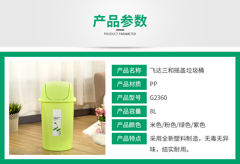 乐玩(中国)三和G2360 摇盖垃圾桶(8L) / G2370 摇盖垃圾桶(6L)乐玩(中国)特点