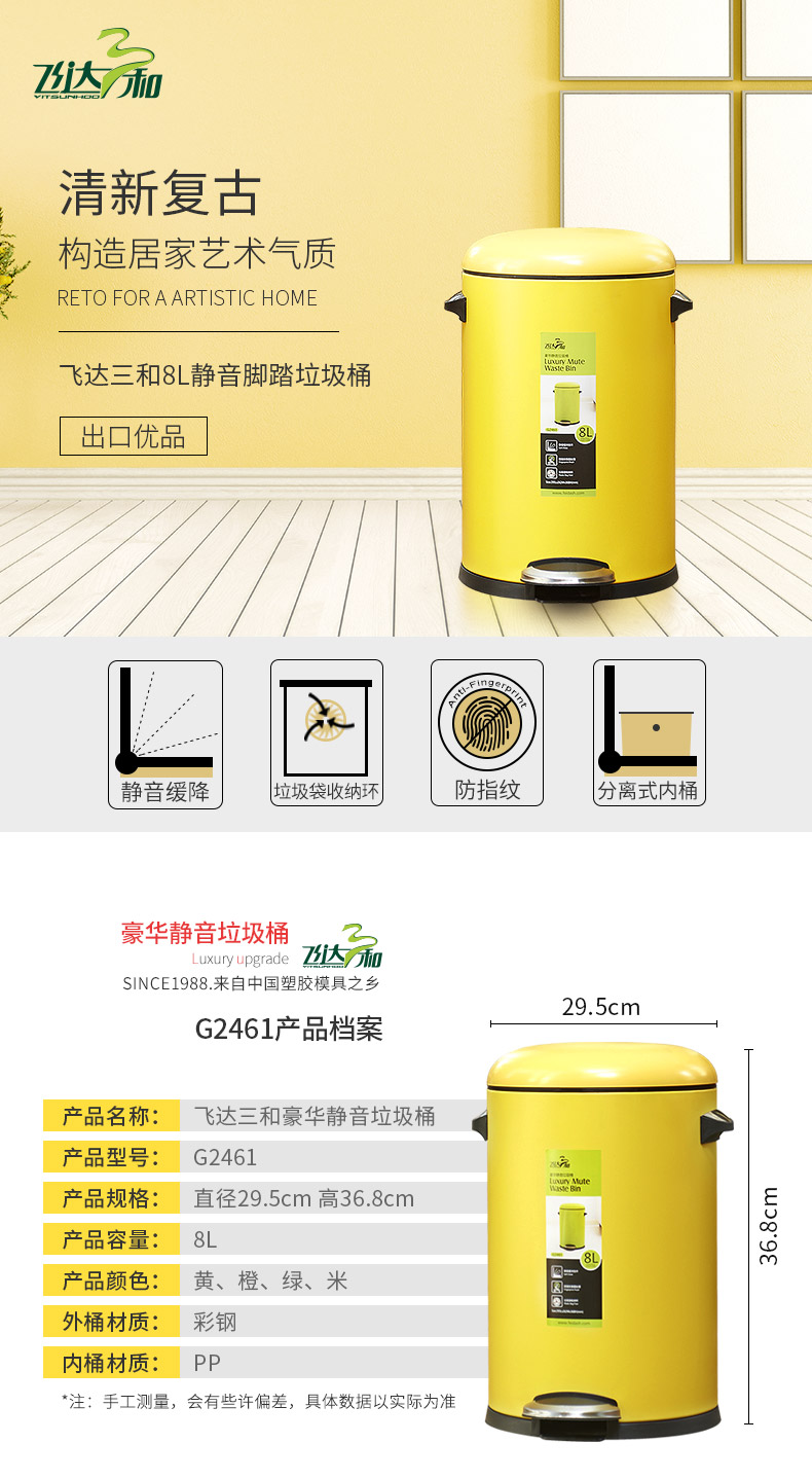 乐玩(中国)三和G2451豪华静音垃圾桶(5L)/G2461豪华静音垃圾桶(8L)/G2581豪华静音垃圾桶(12L彩钢)乐玩(中国)特点
