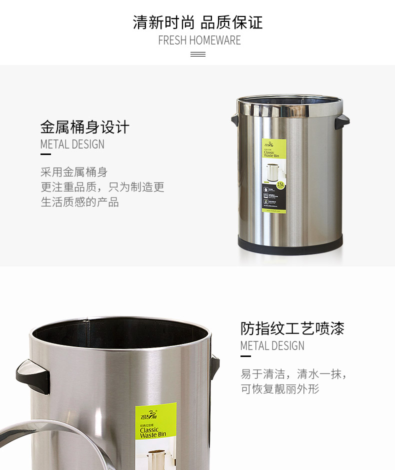 乐玩(中国)三和G2500经典垃圾桶12L/G2510经典垃圾桶15L(砂钢)乐玩(中国)特点