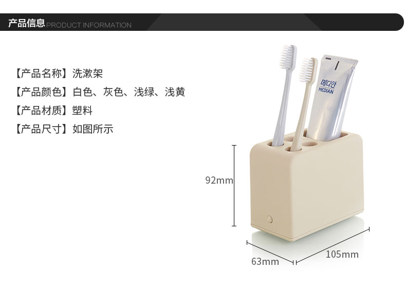 品牌名称:乐玩(中国)三和 生产地区:中国·浙江·台州 乐玩(中国)货号:N1102 装箱数:96 乐玩(中国)尺寸:115*63*92mm 外箱尺寸:56*38*43cm 条形码:6931643815857 乐玩(中国)三和N1102牙刷架