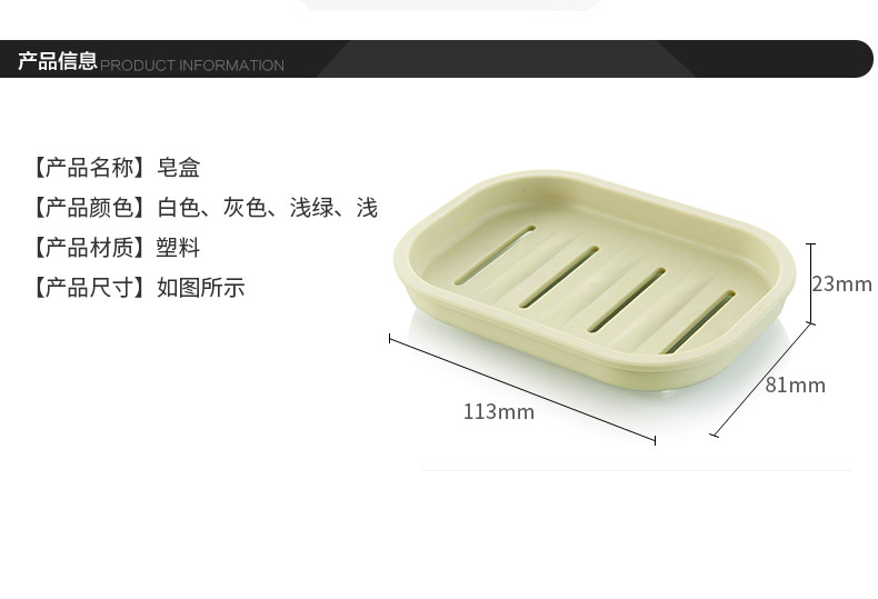 品牌名称:乐玩(中国)三和 生产地区:中国·浙江·台州 乐玩(中国)货号:N1103 装箱数:96 乐玩(中国)尺寸:113*80*25mm 外箱尺寸:37*26*37cm 条形码:6931643815864 乐玩(中国)三和N1103皂盒